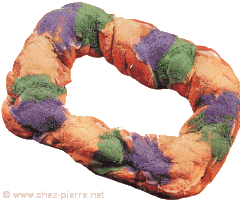 King CakeThe equivalent of the "Galette des Rois" in Europe. But
