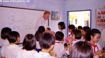 dynamique M. Dung enseigne les parties du corps par le karaté et la médecine,