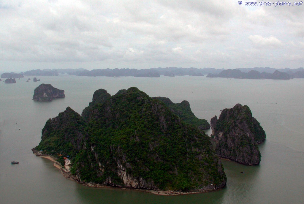 belle vue panoramique : la Baie, la ville de Hon Gai (moitié "habitation"
