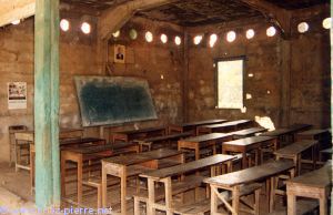 une salle de classe près d'un monastère, discute avec un prof...